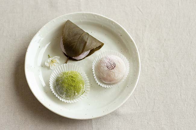- 2 sakura mochis, « gros » mochis anko accompagnés de 2 feuilles de cerisier