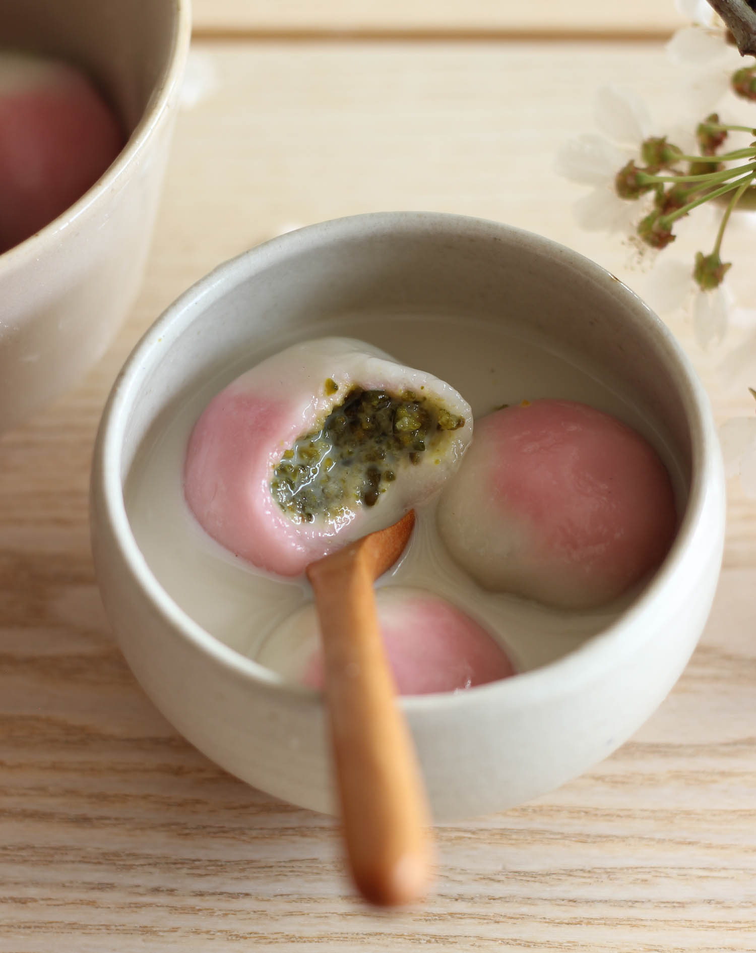 Tangyuan, le mochi chinois, pistache et sakura Il n'y a pas qu'au Japon qu'une tradition du mochi existe. Nous vous avions déjà parlé du mochi hawaïen, découvrez ici une recette de tangyuan ! Découvrir