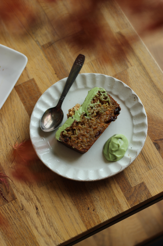 Pour célébrer cette beauté mystérieuse, cette beauté bizarre, je vous propose gâteau-ovni, le carrot-mochi-cake à la texture élastique et humide, délicieusement parfumé de cannelle, de gingembre et d’anis vert. Le tout généreusement nappé d’un glaçage crémeux au matcha et de noix.